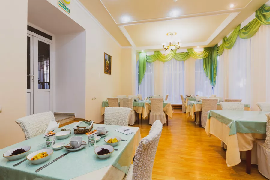 Столовая санатория им. Кирова в Кисловодске предлагает посетителям уютную атмосферу и великолепный выбор блюд, а также рассчитана на 140 посадочных мест, что обеспечивает комфортное пребывание для всех гостей. Кроме того, здесь предусмотрены разнообразные вегетарианские блюда, обычное и праздничное меню, которые способны удовлетворить вкусы гостей.