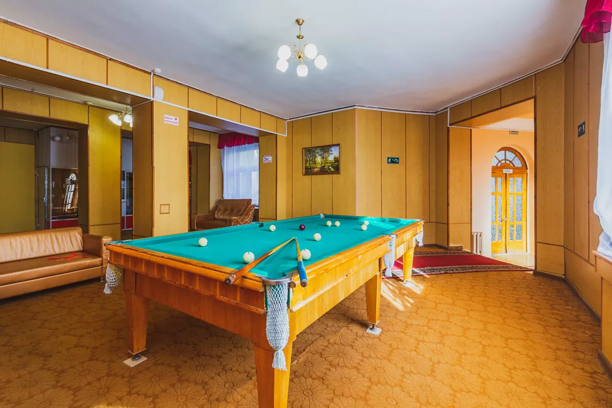 В санатории "Кирова" имеется отличный зал для любителей игры в бильярд. Он предоставляется за дополнительную плату и оборудован всем необходимым для комфортной игры и проведения досуга. Здесь гости могут насладиться партиями в различные виды бильярдных игр в уютной и расслабляющей обстановке.